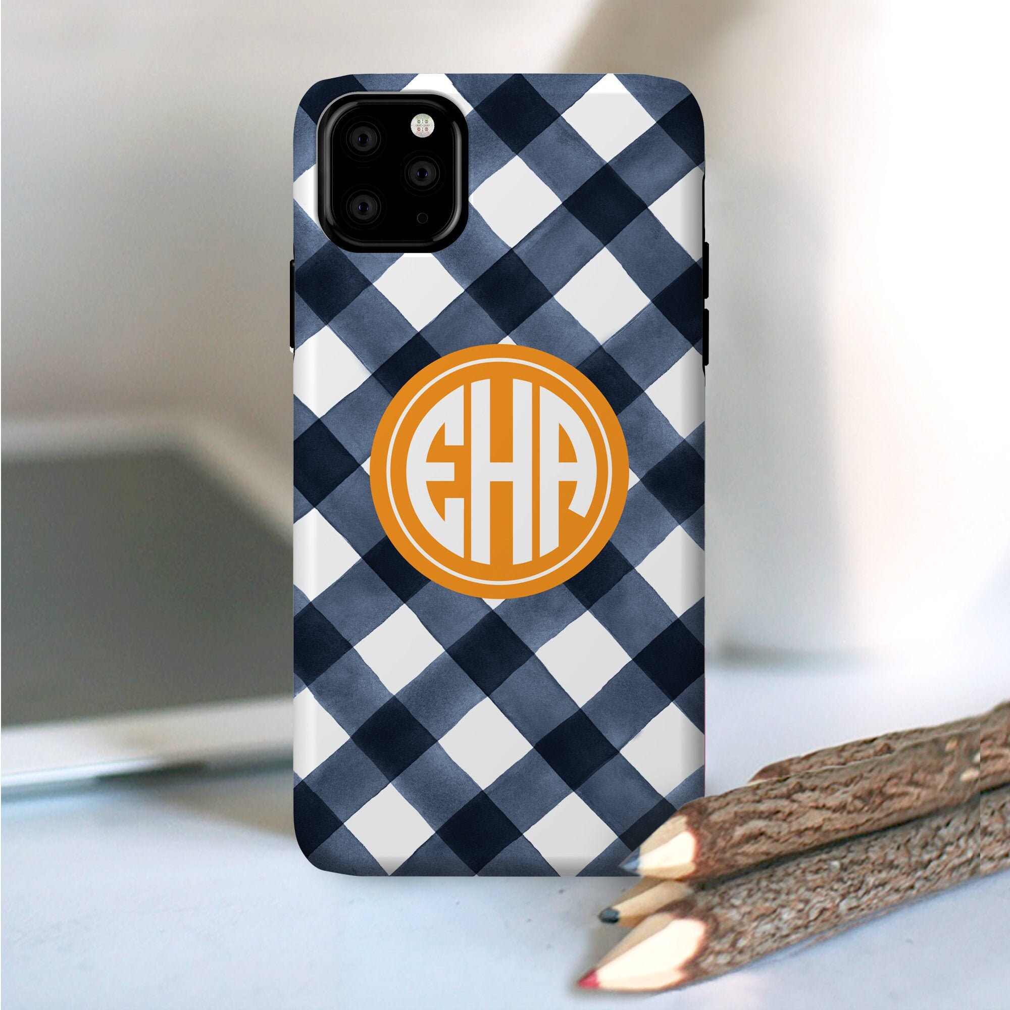 Iphone Monogram Case Custom Gingham Watercolor For The Etsy De